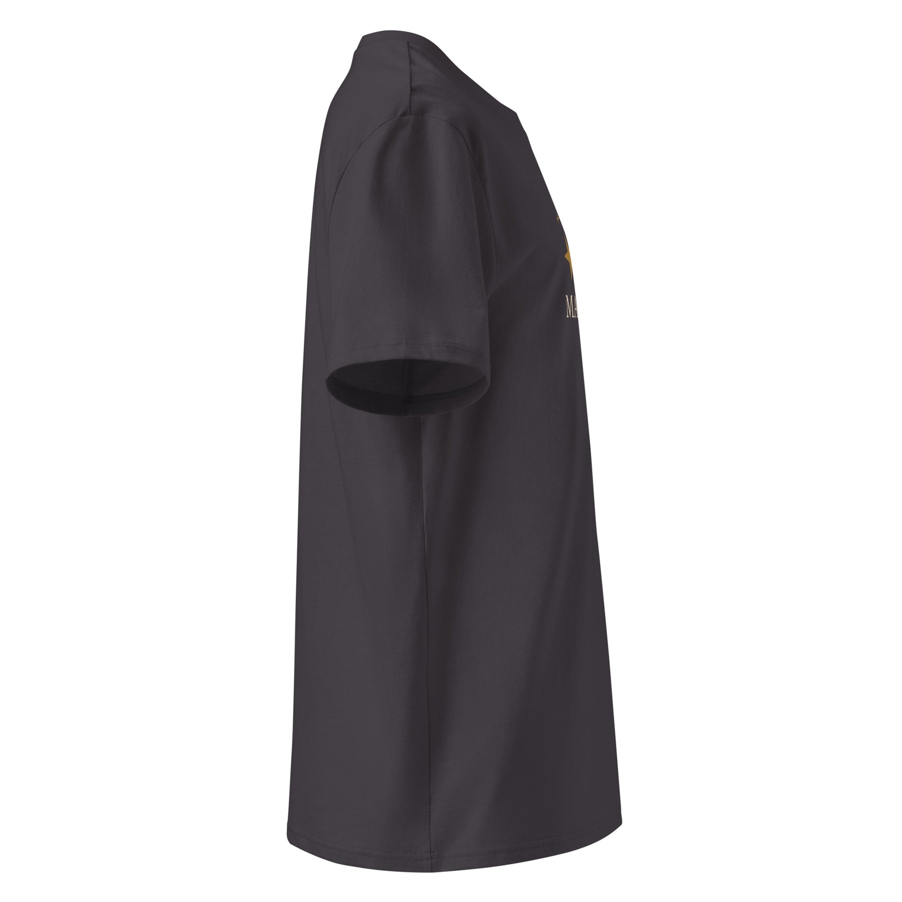 -Materiał: 100% organiczna bawełna czesana (ring-spun) -Gramatura materiału: 180 g/m² (5,3 oz./yd.²) -Rodzaj splotu: Single jersey -Krój: Regular fit (standardowy) -Rękawy: Wszywane (set-in sleeves) -Kołnierz: ściągacz 1 × 1 przy dekolcie -Wykończenie: Szeroki, podwójny ścieg na rękawach i dolnym rąbku -Detale: Taśma wzmacniająca z tego samego materiału na karku (wewnątrz)